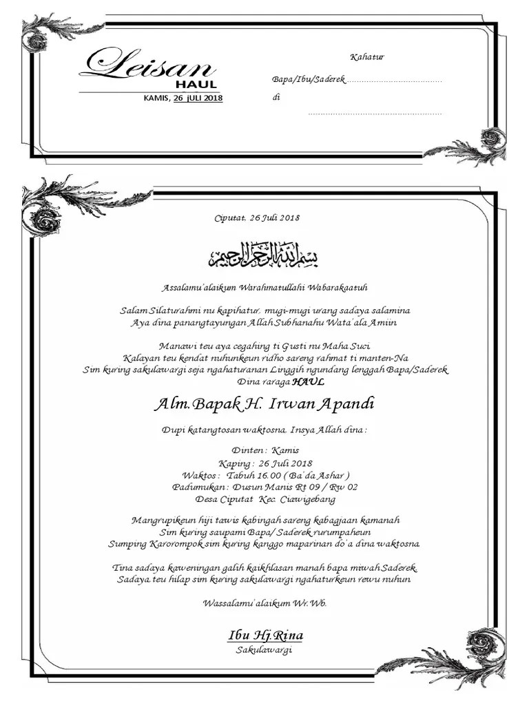 Contoh surat undangan pengajian dalam bahasa sunda picture put up ang submitted by admin that saved in our collection. Contoh surat undangan sunatan dalam bahasa sunda from undangan.me bisa juga menggunakan bahasa daerah setempat kata kata undangan aqiqah . Surat undangan pengajian dalam bahasa sunda contoh surat undangan pengajian sederhana . Contoh surat undangan walimatul khitan | belajar office 55 contoh kata. Com download contoh surat undangan uleman syukuran bahasa sunda contoh.